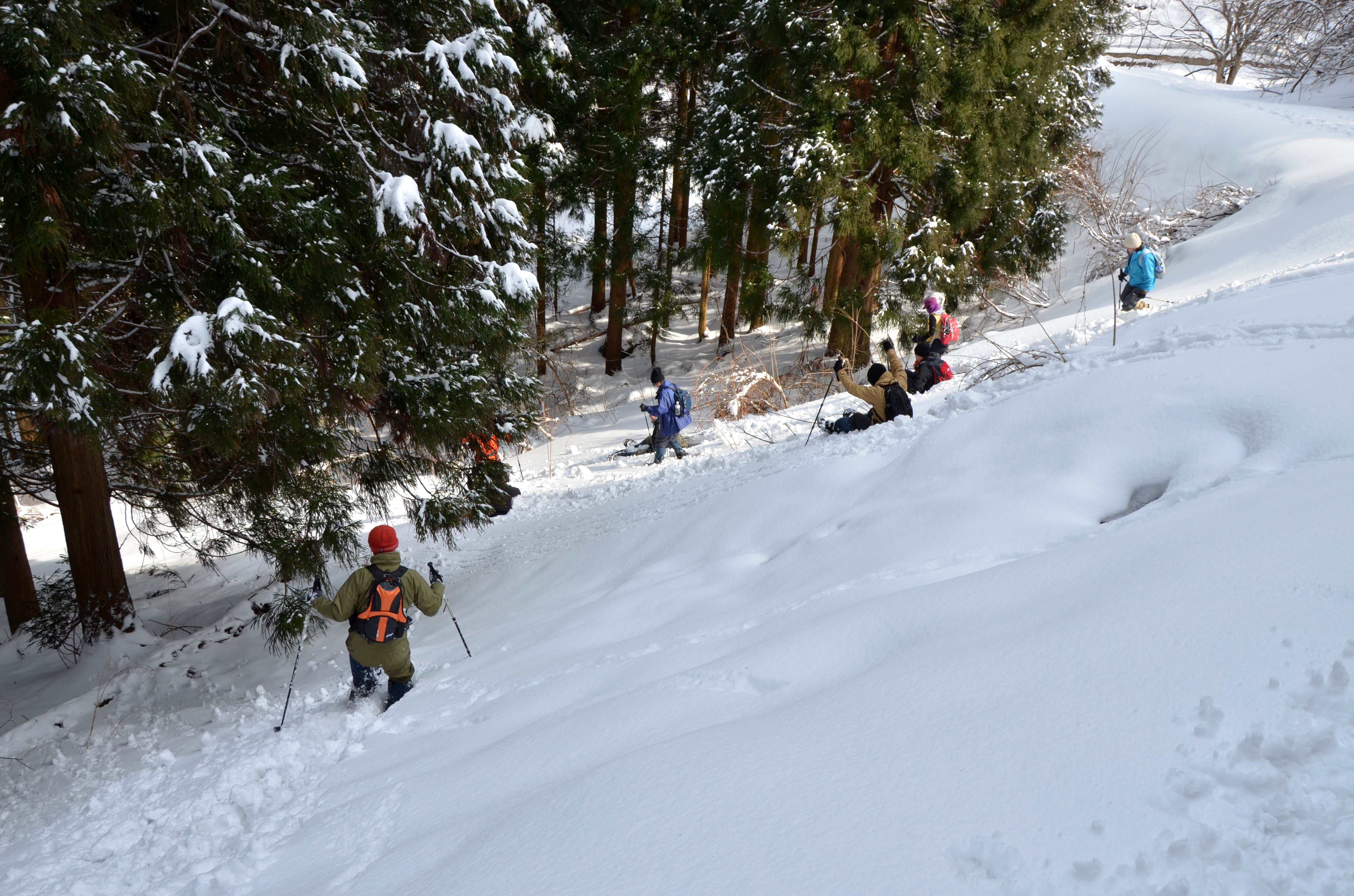 主催は山陰松島遊覧さん。いつもは浦富の海で遊覧船を運行されているんだけど、海だけでなく、山の岩美町もたっぷり楽しんでもらえるように、このスノーシュー企画を発案されたんだって。