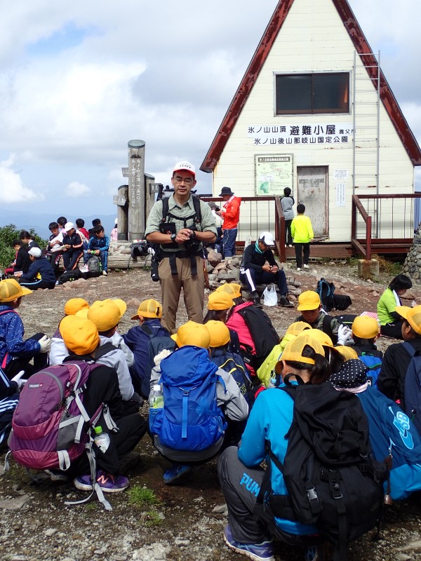 | 概要 | はじめに登山時の注意点を説明した後、登山を開始。30分毎に水分補給の休憩と3回の飴休憩、山頂ではお弁当を食べます。インタープリター(自然解説専門員)が氷ノ山の自然や歴史について説明します。打ち合わせを行い、学校での学習にあわせた内容を盛り込むなど、団体の要望に応じた解説を増やすことが可能です。片道4Kmを登りきると達成感や連帯感が生まれます。 |