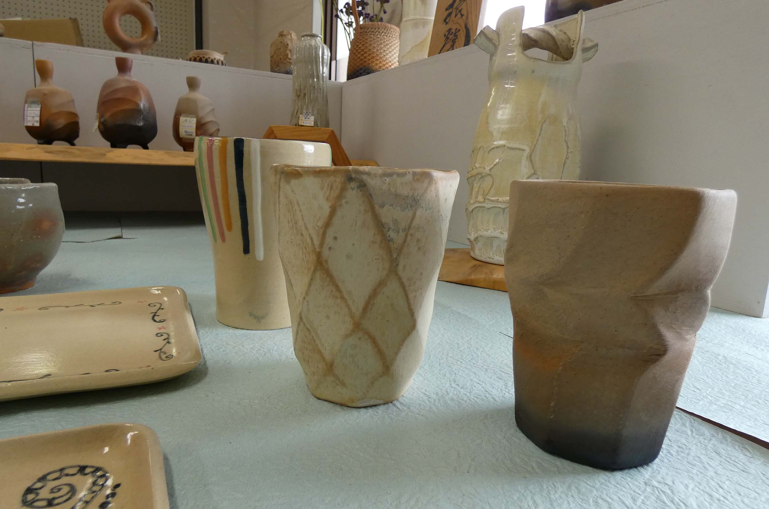 昔、三朝温泉の元湯を見つけたのが白い狼であったという三朝温泉の伝説にちなみ、ここで作られる焼き物は「白狼焼(はくろうやき)」と呼ばれています。素朴で、土の質感を活かした作風が美しく、温かみのある作品がたくさん作られています。
