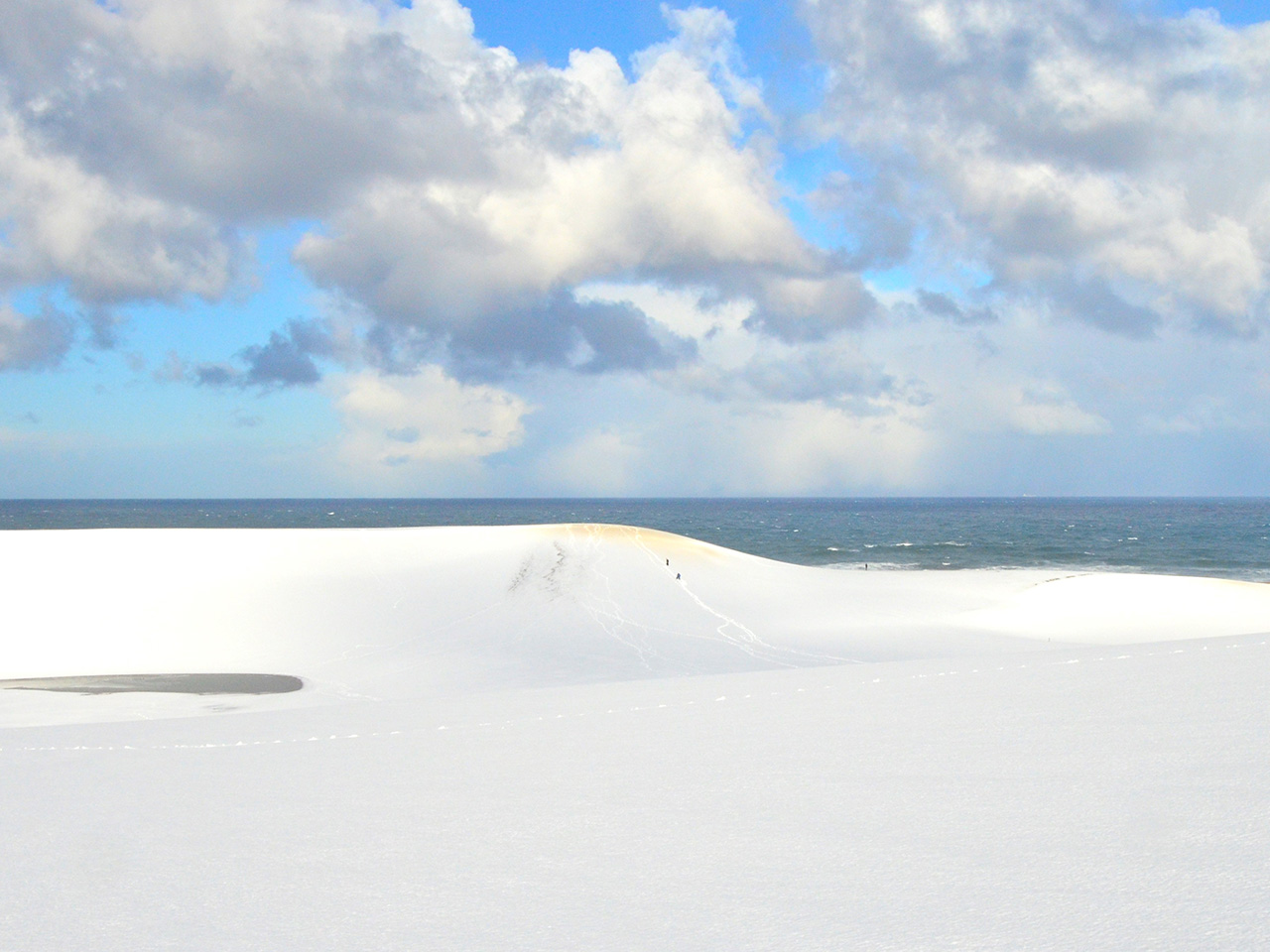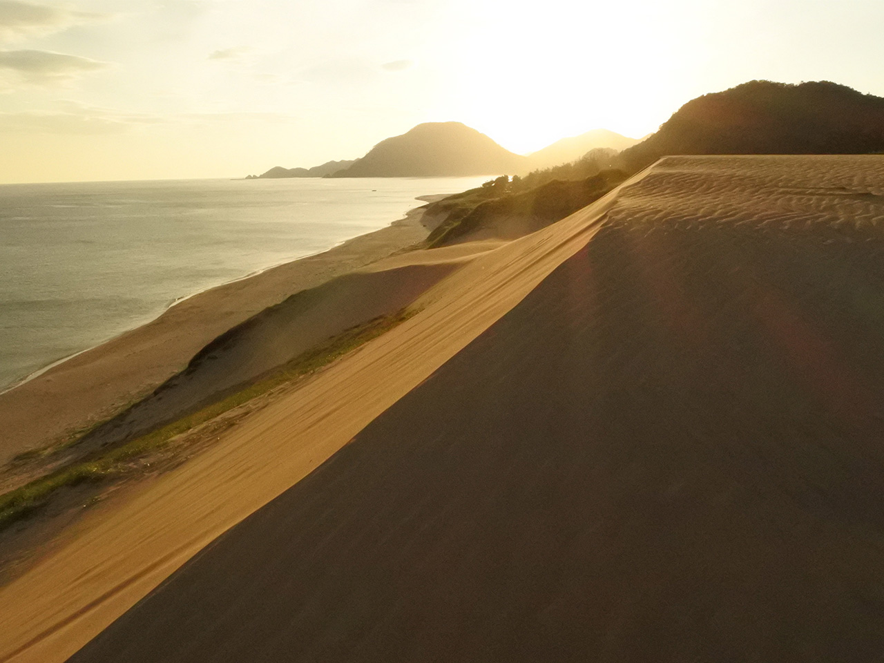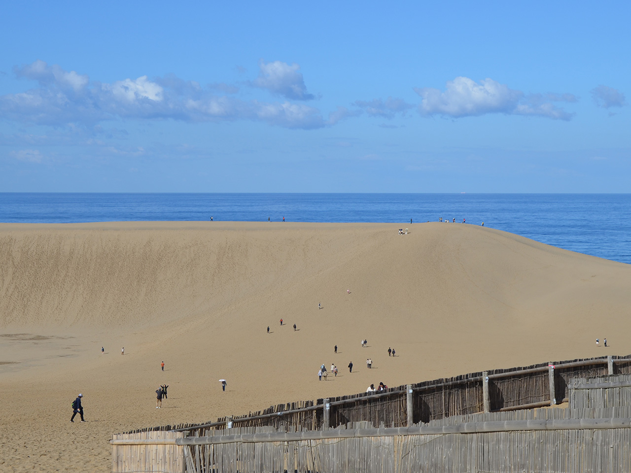 鳥取砂丘の中にも馬が存在!木製階段を登ると、最初に目に付く山のような砂の丘が通称「馬の背」と呼ばれています。標高47mの頂上からは日本海を見下ろす爽快な景色が広がります。