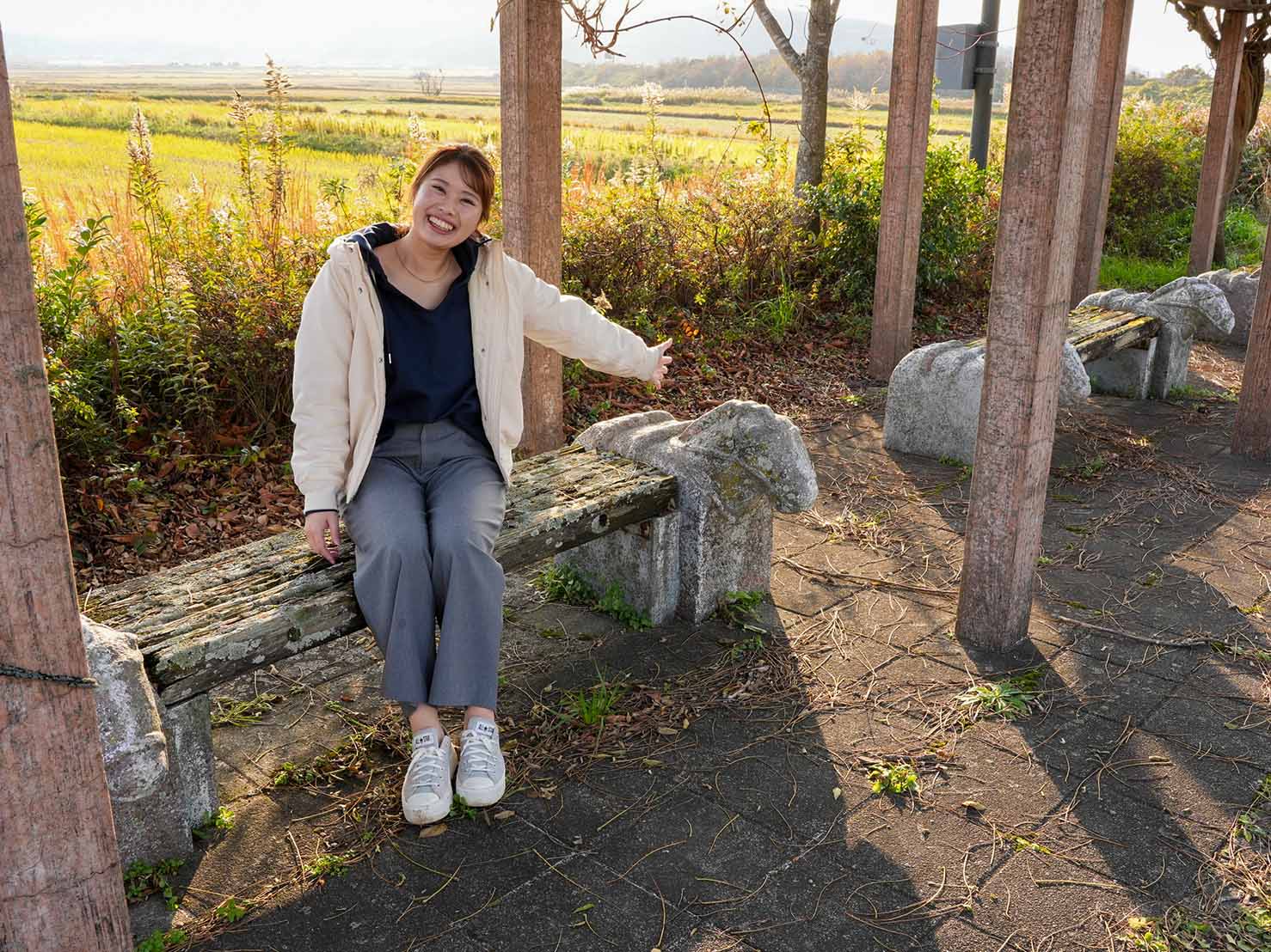 JR淀江駅から天神垣神社までの道「古代ロマンロード」には、石馬をモチーフにしたベンチや案内板が点在しています。