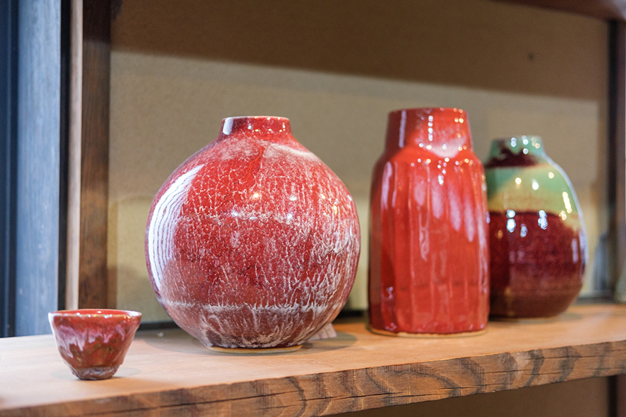 鳥取ならではの梨の灰を使った作品作りも