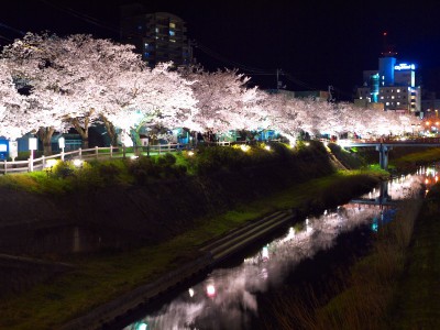 川沿いに約2km続く桜並木は、遊歩道が整備されており、見事な桜のトンネルです。鳥取駅からも近く、地元にも人気のお花見スポットです。期間中は、ボンボリが点灯し、川面に映る幻想的な夜桜を楽しんでいただけます。